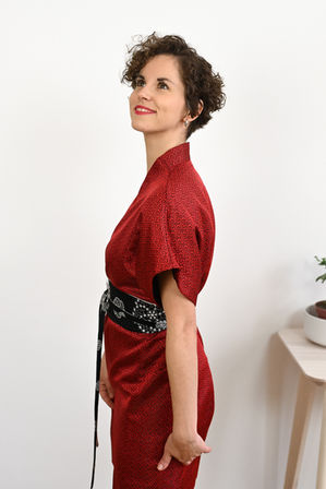 Naše modely se neřídí klasickými konfekčními velikostmi. Díky zavinovacím střihům se přizpůsobí postavě i jejím proměnám. Řídit se můžete mírami v úvodu každého modelu – a pokud si nejste jistý/á , rády vám model upravíme/ušijeme na míru.
