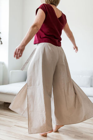 Naše modely se neřídí klasickými konfekčními velikostmi. Díky zavinovacím střihům se přizpůsobí postavě i jejím proměnám. Řídit se můžete mírami v úvodu každého modelu – a pokud si nejste jistý/á , rády vám model upravíme/ušijeme na míru.