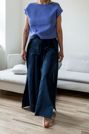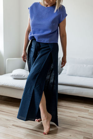 Naše modely se neřídí klasickými konfekčními velikostmi. Díky zavinovacím střihům se přizpůsobí postavě i jejím proměnám. Řídit se můžete mírami v úvodu každého modelu – a pokud si nejste jistý/á , rády vám model upravíme/ušijeme na míru.